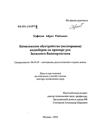 Автор выражает искреннюю благодарность научному консультанту заведующему кафедрой мелиорации и рекультивации земель МГУП, заслуженному деятелю науки Российской Федерации, доктору технических наук, профессору Голованову Александру Ивановичу за неоценимые советы и помощь при проведении научных исследований, а также глубокую признательность всем сотрудникам кафедры мелиорации и рекультивации земель МГУП, оказавшим помощь и поддержку при работе над диссертацией.