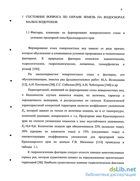 1.1 Факторы, влияющие на формирование поверхностного стока в условиях предгорной зоны Краснодарского края 9