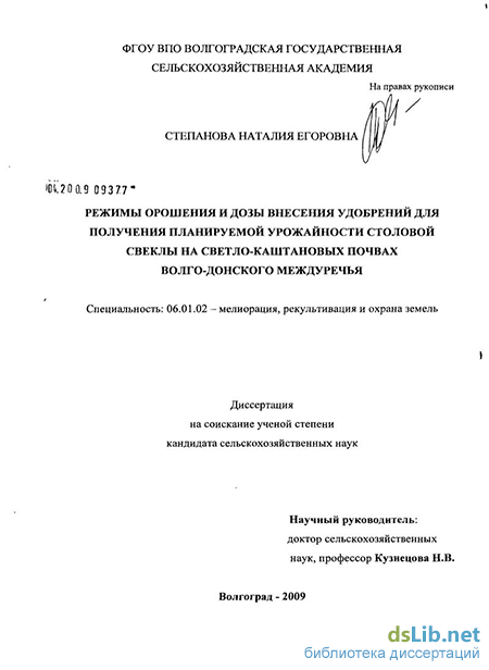Апробация работы. Основные положения диссертационной работы докладывались на научно-практических конференциях: Международной юбилейной научно-практической конференции (Костяковские чтения), посвященной 120-летию со дня рождения А.Н. Костякова (г. Москва, ВНИИ-ГиМ, 2007 г.), Международной научно-практической конференции молодых исследователей (г. Волгоград, ВГСХА, 2007 г.), научно-практической конференции аспирантов и молодых ученых (Волгоград, ВНИАЛМИ, 2007 г.), Международной (4-й Всероссийской) конференции молодых ученых и специалистов «Новые технологии и экологическая безопасность в мелиорации» (г. Коломна, 2007 г.), ХП Региональной конференции молодых исследователей Волгоградской области (г. Волгоград, ВГСХА, 2007 г.), Международной научно-практической конференции, посвященной 65-летию Победы в Сталинградской битве (г. Волгоград, ВГСХА, 2008 г.), Международной научно-практической конференции «Взаимодействие НИУ и социума в решении задач АПК» (г. Москва, 2008 г.), Международной научной конференции молодых ученых и специалистов, посвященной выдающимся педагогам Петровской академии (г. Москва, РГАУ-МСХА имени К.А. Тимирязева, 2008 г.), научно-практической конференции молодых ученых «Проблемы и перспективы развития современных элементов технологий производства сельскохозяйственной продукции» (г. Камызяк, ВНИИОБ, 2008 г.), Международной научно-практической конференции, посвященной 65-летию образования Волгоградской государственной сельскохозяйственной академии (г. Волгоград, ВГСХА, 2009 г.).