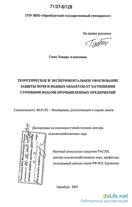 Предметом исследований в настоящей работе является обоснование устойчивости функционирования природных систем в условиях техногенеза и комплексного обоснования надежных и экологически безопасных технологических решений по утилизации промышленных сточных вод и твердых отходов с целью охраны почв и водных объектов.