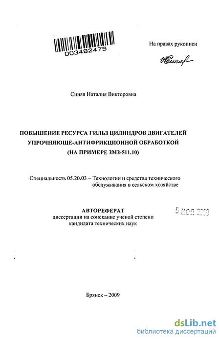 Теоретическое обоснование повышения ресурса гильз цилиндров методом поверхностной пластической деформации с применением антифрикционных покрытий;