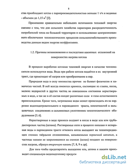 Применение дорогостоящего специального оборудования водоподго-товки экономически не выгодно на небольших источниках тепловой энергии, да и как показала практика, все приведенные меры борьбы и предотвращения накипеобразования не обеспечивают 100%-ого безнакипного режима работы котлов. Наличие накипных отложений на теплопередающих стенках котлов опасно. Из-за низкой теплопроводности накипи 0,08 - 2,3 Вт/(м-К) [8, 31] происходит перегрев металла теплопередающих поверхностей, а при большой её толщине нарушается циркуляция воды и пережигается металл, вследствие чего сокращается срок службы котлоагрегата. Шлам, скапливающийся в нижних коллекторах и в трубах с малыми скоростями движения воды, также может вызвать нарушение циркуляции. Кроме того, увеличивается пережог топлива. По многочисленным данным [8, 32, 33] каждый миллиметр накипи приводит к перерасходу до 2 и более процентов топлива. Встречаются данные, что общие потери топлива достигают 10% и более [2].