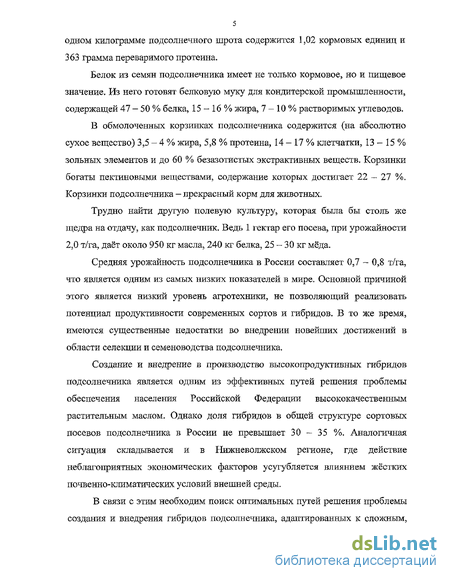 Создание и внедрение в производство высокопродуктивных гибридов подсолнечника является одним из эффективных путей решения проблемы обеспечения населения Российской Федерации высококачественным растительным маслом. Однако доля гибридов в общей структуре сортовых посевов подсолнечника в России не превышает 30 - 35 %. Аналогичная ситуация складывается и в Нижневолжском регионе, где действие неблагоприятных экономических факторов усугубляется влиянием жёстких почвенно-климатических условий внешней среды.
