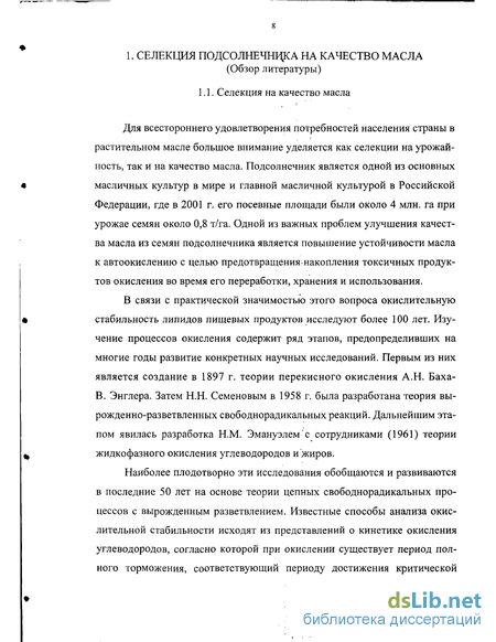 1. Селекция подсолнечника на качество масла (Обзор литературы) 8