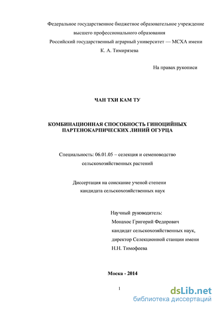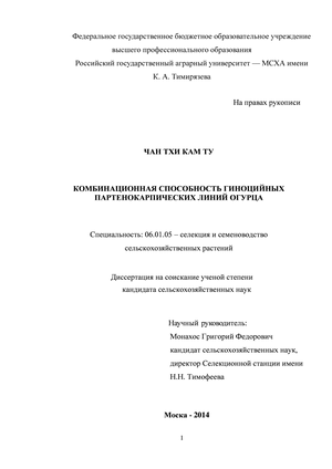 Научная новизна исследований. Дана оценка общей и специфической комбинационной способности инбредных линии гиноцийного партенокарпического огурца в системе полных диаллельных скрещиваний;