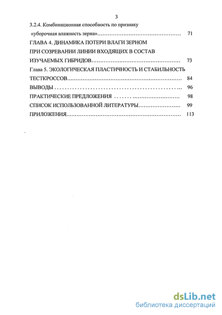 3.2.4. Комбинационная способность по признаку «уборочная влажность зерна» 71