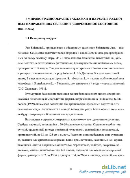 1 Мировое разнообразие баклажан и их роль в различных направлениях селекции (современное состояние вопроса) 8