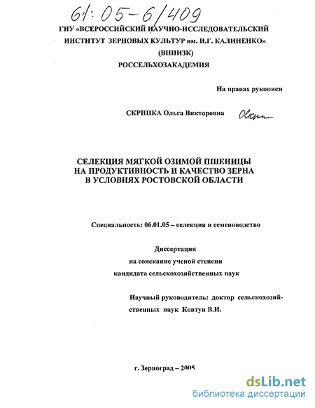 Апробация работы и публикации. Исследования проведены в соответствии с планом научно-исследовательских работ Донского селекцентра Всероссийского научно-исследовательского института зерновых культур им. И.Г. Калиненко по проблеме: 08.04.02.02. «Создать и передать на государственное сортоиспытание для посева по непаровым предшественникам высокозимостойкий, засухоустойчивый сорт сильной озимой пшеницы с потенциальной урожайностью 6,0-6,5 т/га, устойчивостью к полеганию, осыпанию, основным болезням».
