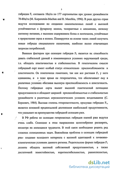 Актуальность темы исследований. Озимая рожь является важной зерновой культурой России. Однако большинство возделываемых сортов ржи по причине селекционного несовершенства недостаточно соответствуют требованиям интенсивного земледелия, что отрицательно сказывается на урожайности и стабильности валовых сборов зерна. В ряде стран Европы пришедшие на смену сортам-популяциям более урожайные гибриды Fi резко усилили конкурентоспособность ржи в сравнении с пшеницей, ячменем и другими культурами, особенно на бедных по плодородию почвах (F. Machan, 1994). Причиной повышенного интереса к гибридным сортам ржи является более высокая их урожайность, технологичность и широкий спектр использования продукции. Средняя прибавка урожая зерна ржи в ФРГ у гибридов Fi составила 10ц/га по 177 сортоопытам при уровне урожайности 70-80ц/га (М. Karpenstein-Machan and R. Maschka, 1996). В РФ работы по селекции гетерозисных гибридов озимой ржи ведутся очень слабо. Селекцию в этом направлении целесообразно расширять, несмотря на имеющиеся трудности. Важнейшая проблема в селекции гибридной ржи- создание исходного материала с высокой адаптацией к почвенно-климатическим условиям данного региона. Важность этой задачи бы-лоцтоложенс(.в основу настоящей работы.