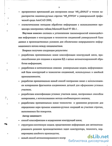 Анализ содержания различных БД [1, 2ч-8, 10-=-81] показал, что на различных этапах производственного процесса используют однородную информацию, но имеющую различия в её структурировании: это сведения о конструкциях швейных изделий.