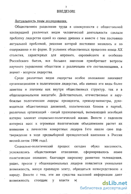 Общественное разделение труда в совокупности с общественной кооперацией различных видов человеческой деятельности сделали проблему лидерства одной из самых древних и вместе с тем постоянно актуальной проблемой, решение которой постоянно менялось и по содержанию и по форме, В условиях общественных процессов конца XX столетия, характерных для мирового, европейского и особенно Российского бытия, все большее значение приобретают вопросы научного управления обществом и различными его составляющими, а значит - вопросы лидерства,