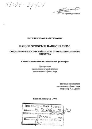 Объект и предмет исследования. Объектом выступает пространство дискурса по проблемам формирования и эволюции этносов, наций и национализма 19-20 столетий. Предметом исследования являются философские и парадигмальные основания современных концепций этносов, наций, национальных государств, национализма и федерализма,