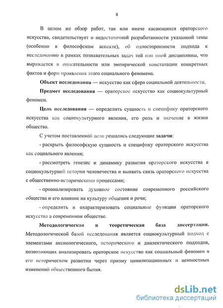 Предмет исследования — ораторское искусство как социокультурный феномен.