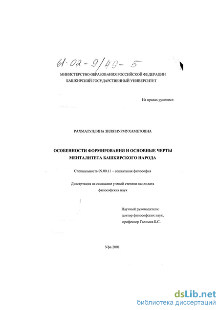 Обзор имеющейся литературы но проблеме башкирского менталитета, свидетельствует о.том, что на сегодняшний день не существует специальных работ, посвященных данной проблематике, охватывающих ее в целостности. Эта область исследований является еще малоразработанной и недостаточно теоретически освещенной.