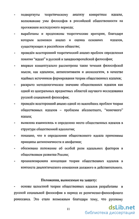 Диссертация решает важную теоретическую проблему - разработку основ аксиологической теории и анализа общественных идеалов, что позволяет существенно обогатить новыми положениями и идеями одну из центральных предметных областей русской социальной философии.