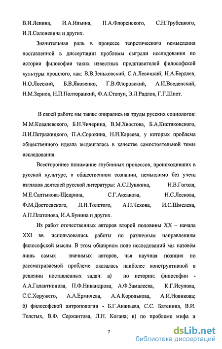 В-третьих, часто многие исследователи истории русской философии вообще не выделяют в своём анализе проблему общественного идеала в качестве особой области философского знания. Поэтому в диссертации приходилось идти по пути повторного анализа, чтобы выявить и сформулировать проблематику, относящуюся непосредственно к разработке общественного идеала в концепции того или иного русского философа.