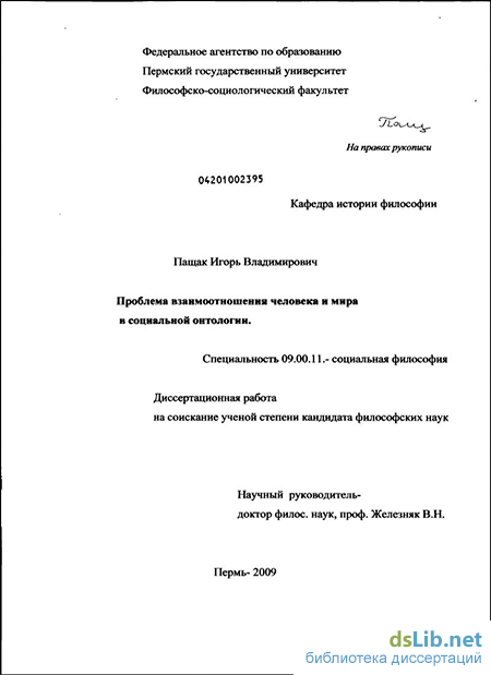 Пащак Игорь Владимирович. Проблема взаимоотношения человека и мира в социальной онтологии : диссертация ... кандидата философских наук : 09.00.11 / Пащак Игорь Владимирович; [Место защиты: Перм. гос. ун-т].- Пермь, 2009.- 154 с.: ил. РГБ ОД, 61 10-9/82