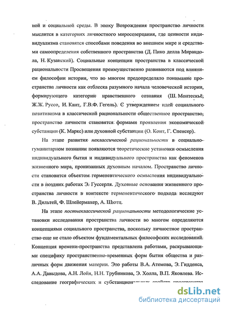 Социально-философский подход к пространству личности связан с развитием классической, неклассической и постнеклассической рациональности в социальном познании.