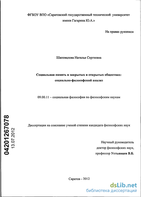 Саратовские мыслители разработали методологические и социокультурные основания исследования социальной памяти, а также основания ее исследования в традиционном и современном обществе (Я.Ф. Аскин, А.С. Борщов, В.Н. Гасилин, М.Э. Елютина, Е.В. Листвина, М.В. Шугуров). В рамках саратовской философской школы создалось целое направление в исследовании проблем социальной памяти и связанной с ней проблемой социального кодирования (В.Б. Устьянцев, В.П. Барышков, Д.И. Заров, Д.А. Аникин, О.Н. Осина, Е.В. Романовская).