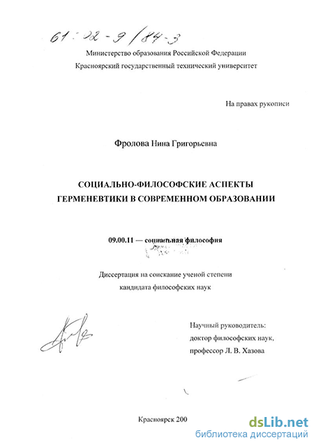 Исключительное значение для наших целей имели разработки современных исследователей герменевтической проблематики Л. А. Беляевой [5], А. А. Брудного [15], П. П. Гайденко [27], С. Н. Земляного [45],