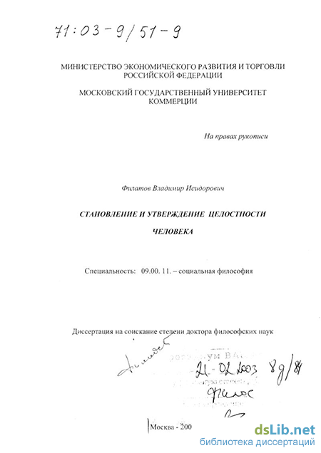 Целью диссертационного исследования является построение концепции становления целостности человека.