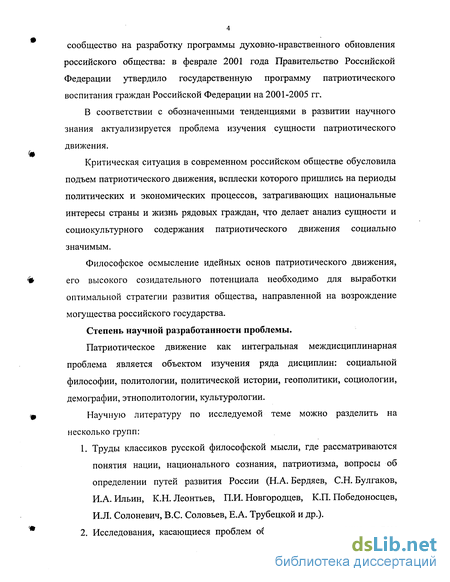 патриотических организации, теоретические исследования современных российских философов и политиков.