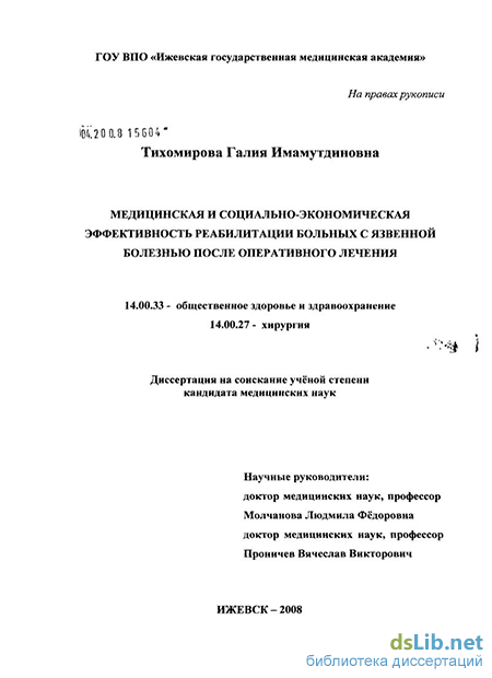 Гихомирова Галия Имамутдиновна. Медицинская и социально-экономическая эффективность реабилитации больных с язвенной болезнью после оперативного лечения : диссертация ... кандидата медицинских наук : 14.00.33 / Гихомирова Галия Имамутдиновна; [Место защиты: Федеральное государственное унитарное предприятие Всероссийский научно-исследовательский институт жележнодорожной гигиены]. - Москва, 2008. - 200 с. : 17 ил.