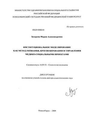 Научная новизна диссертационного исследования заключается в разработке концепции моделирования как метода социологии медицины, оптимальном для проектирования и управления институциональными процессами в здравоохранении.