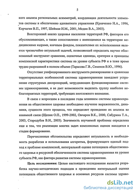 Над данной проблемой работали многие российские ученые: Венедиктов Д.Д., 1994, Овчаров В.К., Щепин В.О., 1996, Айвазян С.А., 1996, Тарасов Г.В. с соавт., 1996, Щепин О.П., 1997, 1999, Артоболевский С.С., 1998, Богачева О.В., 1998, Вишняков Н.И.,1998, Кравченко Н.А., 1998, Лисицин Ю.П., Филатов В.Б, 1998, Вялков А.И., Щепин В.О., 2001, Шейман И.М., 2001, Бабанов С.А., 2001, Габуева Л.А., 2002, Васильцова Л.И., Юфіботе была использована методика расчета интегрального показателя, разработанная коллективом авторов НПЦ «Уралмедсоцэкономпроб-лем» (Блохин А.Б., Чернова Т.В., Ползик Е.В., Казанцев B.C.) совместно с Тюковым Ю.А. (Управление здравоохранением, г. Челябинск) и Щепиным В.О. (ГУ ННИИ 03 РАМН) в 2001 году. В этой методике интегральный показатель является смысловой квинтэссенцией ряда базовых показателей выбранных для характеристики потенциала здоровья и ресурсной обеспеченности системы лечебно-профилактической помощи.