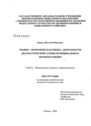 Впервые проведена медико-экономическая оценка деятельности диагностической службы муниципального здравоохранения.
