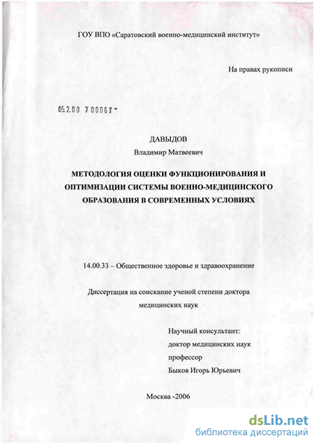 Глава 4. Исследование деятельности военно-медицинского вуза (на модели Саратовского военно-медицинского института) 187