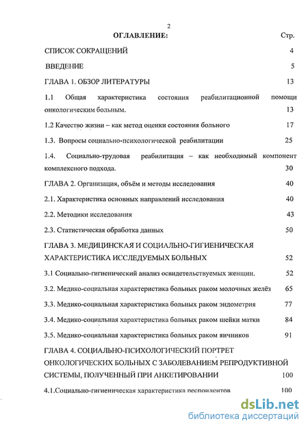 В диссертации так же освещены вопросы социально-психологической реабилитации онкогинекологических больных, приоритетности и последовательности методов медицинской, психологической и социальной реабилитации женщин. Поэтому работа в этом направлении, несомненно, актуальна.