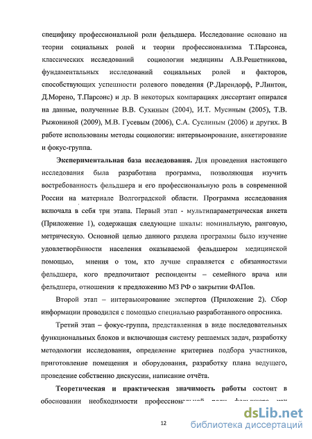 - Методология исследования профессиональной роли фельдшера в социологии медицины