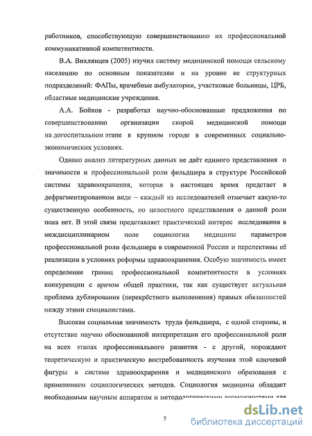 Степень разработанности проблемы. В связи с реализацией Национального проекта «Здоровье», проведением реформы отечественного здравоохранения, а также изменением отношения населения к системе оказания медицинской помощи возрос интерес к изучению медицинских профессий в России. Мажаренко В.А. (2012) указывает, что изучение профессиональных ролей специалистов широкого профиля в проблемном поле социологии медицины, которая интегрирует усилия ученых, представляет одно из направлений исследований.