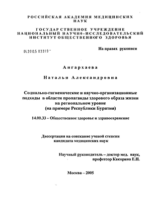 женщин - 69,1, свидетельствует о необходимости поиска путей сохранения и укрепления здоровья населения. Вопросам совершенствования профилактической помощи населению в субъектах Российской Федерации посвящено достаточно много научных работ (Мальцев В.Н., 2001; Потемкина М.Ю., 2003; Коробова Т.В., 2003, Колинько А.А., 2004, Ермолаев А.Р., 2004 и др.). Однако научные исследования, проведенные в последние годы на территории республики касались в основном разработкам организационных основ оказания лечебно-профилактической помощи населению (Будаев С.Д, 1997; Цыремпилов Ю.Б., 1999; Будаев Б С, 2000; Кожевников В.В., 2003; Очиров В.М., 2004). При всем многообразии отечественных работ в области профилактики заболеваний исследованиям вопроса организационного обеспечения эффективно действующей пропаганды здорового образа жизни уделялось недостаточно много внимания, в Бурятии подобных исследований не проводилось, что явилось основанием для выполнения настоящей работы.