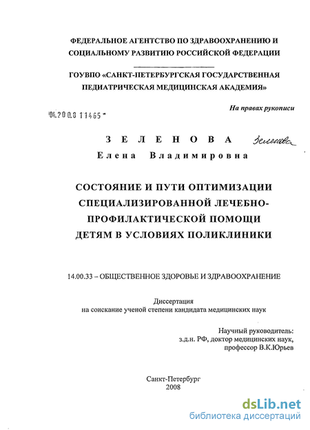 Тем не менее, оптимизация специализированной амбулаторной лечебно-профилактической помощи детям в современных социально-экономических условиях не стала до настоящего момента предметом детального медико-социального и организационного исследования.
