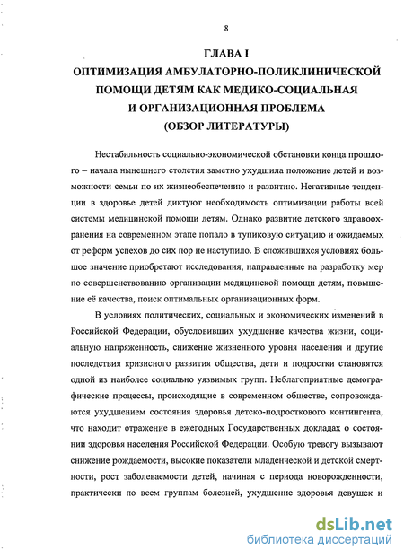 ГЛАВА I. Оптимизация амбулаторно-поликлиническои помощи детям как медико-социальная и организационная проблема 8