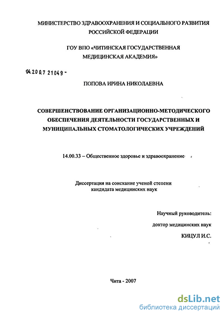 Разработка и внедрение системы организационно-методического обеспечения для повышения эффективности деятельности государственных и муниципальных стоматологических учреждений (на примере Читинской области).
