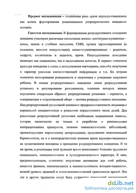 Предмет исследования – социальная роль врача акушера-гинеколога как агента формирования рационального репродуктивного поведения женщин.
