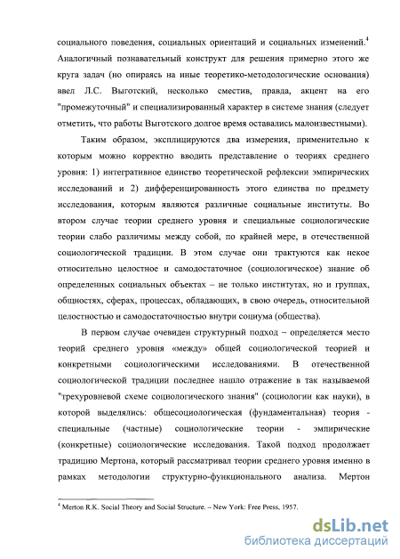 Предмет исследования – методологическая связь социологии медицины и социологических теорий среднего уровня в процессе изучения интеграции медицины в систему социальных институтов общества.
