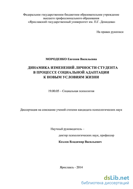 Объект исследования – динамика изменений в процессе социальной адаптации личности.
