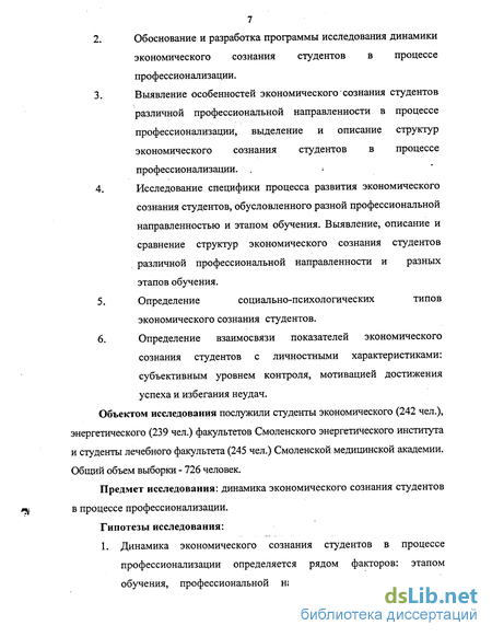 Цель исследования состоит в том, чтобы изучить особенности динамики экономического сознания студентов в процессе