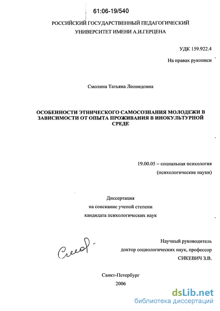 Проблема этнического самосознания, являющаяся основой данной работы, в отечественной науке отражена в исследованиях и публикациях следующих авторов: Э.Г. Александренков, 1996; Ю.В. Бромлей, 1969, 1981, 1983, 1989; Л.М. Дробижева, 1985; В.В. Ивановский, 1914; В.И. Козлов, 1967; П.И. Кушнер, 1949; В.ПЛевкович, Н.Г. Панкова, 1973, 1985; Л.Г. Почебут, 2005; B.C. Мухина, 1988; Д.Н. Овсянико-Куликовский, 1922; П. В. Румянцева, 2002; З.В. Сикевич, 1996, 1999; Г.У. Солдатова, 1998; И.А. Снежкова, 1982; В.Ю. Хотинец, 2000; СМ. Широкогоров, 1923.