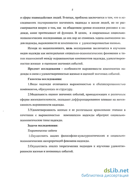 Теоретическая и практическая значимость исследования. Выполненное диссертационное исследование вносит вклад в формирование социально -психологического подхода к изучению надежды. Оно расширяет представления о влиянии жизненных событий на трансформацию, выраженность социально-психологических, личностных образований. Оно существенно дополняет теоре- тические представления о надежде, ее видах и функциях в жизни человека; вносит вклад в разработку проблем жизненной удовлетворенности, отношения к жизни, субъективного благополучия, в развитие концепции о личности как субъекте жизни.