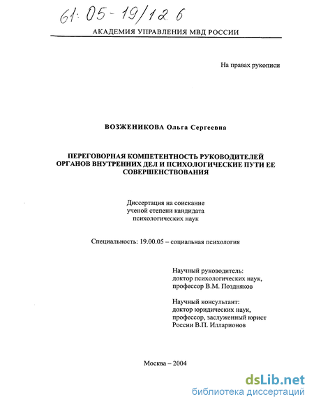 Однако стихийно приобретенный руководителями ОВД опыт ведения переговоров не всегда обеспечивает успех в указанных видах профессиональной деятельности, и в этой связи требуется научное обоснование и внедрение в практику мер по изучению и развитию переговорной компетентности у руководителей органов внутренних дел различного управленческого уровня. Это отвечает и требованиям нормативных документов, где отмечена важность кардинального улучшения системы подготовки кадров руководящего звена, разработки и внедрения в учебный процесс современных технологий профессионально-психологической подготовки руководителей ОВД, способных творчески решать задачи борьбы с преступностью и поддержания общественного порядка .