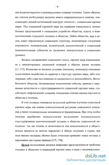 В этих условиях становится актуальной проблема изучения социальной картины мира, как основы психологической регуляции социального поведения, а также индивидуальных механизмов ее формирования. При этом особое значение приобретает психологическое исследование индивидуального структурирования взаимоотношений человека и общества современной молодежью. Так как степень ее включенности или невключенности в общественные процессы во многом определяет и общую ситуацию в стране, при этом именно молодежь обычно более отчетливо проявляет новые взгляды в переломные для страны периоды [175; 176].