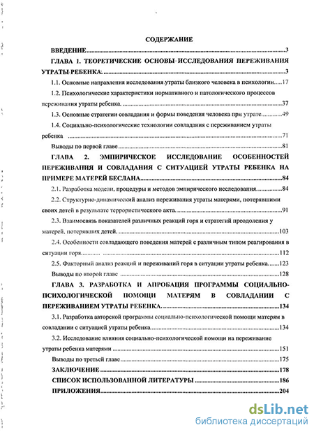 1.2. Психологические характеристики нормативного и патологического процессов переживания утраты ребенка 37