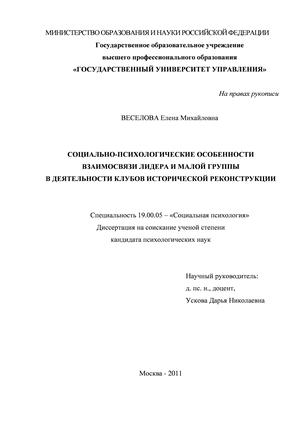Цель исследования - теоретическое обоснование и эмпирическая проверка социально-психологической взаимосвязи лидера и малой группы в деятельности клубов исторической реконструкции.
