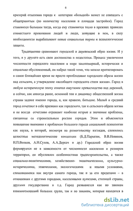 Традиционно сравнивают городской и деревенский образ жизни. И у того, и у другого есть свои достоинства и недостатки. Процесс увеличения численности городского населения в мире закономерный, исторически и социально обусловленный, он набрал такой темп, что можно прогнозировать в самое ближайшее время не просто преобладание городского образа жизни над сельским, а утверждение «всеобщего городского стиля жизни». Город в любую историческую эпоху означал ощутимое превосходство над деревней, и сейчас, как никогда ранее, основной тон и динамику общественной жизни страны задают именно города, и, как правило, большие. Малый и средний город сочетают в себе признаки как городского, так и сельского образа жизни и не всегда отчетливо отражают наиболее острые и значимые проблемы, связанные со стремительным ростом городов. Этим и объясняется повышение внимания к проблемам большого города социальной психологии как науки, в которой, несмотря на разноголосицу взглядов, сложились целостные методологические концепции (Б.Д.Парыгин, В.В.Новиков, И.П.Волков, А.Н.Сухов, А.А.Деркач и др.) Городской образ жизни формируется не в зависимости от численности населения и размеров территории, он обусловлен особенностями градостроительства, а также социально-политическими, хозяйственно- экономическими, культурно-историческими, этническими, экологическими и иными условиями, сложившимися как внутри самого города, так и за его пределами - в отношениях с другими городами, населенными пунктами, столицей страны, другими государствами и т.д. Город развивается как по законам взаимоотношений больших групп, так и по законам, которые находятся в