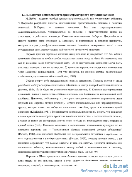 1.1.1. Понятие ценностей в теории структурного функционализма 9